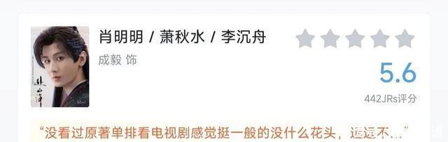 两相对比,更彰显侠义珍贵,所以武侠的底色,注定是悲凉萧瑟。 虽然已超前看结局,但正式收官应该在9月30日,所以《赴山海》在豆瓣迟迟没有开分。 而在另一平台对于演员的演技评分已出炉。 第十名成毅(肖明明/萧秋水/李沉舟)5.6分